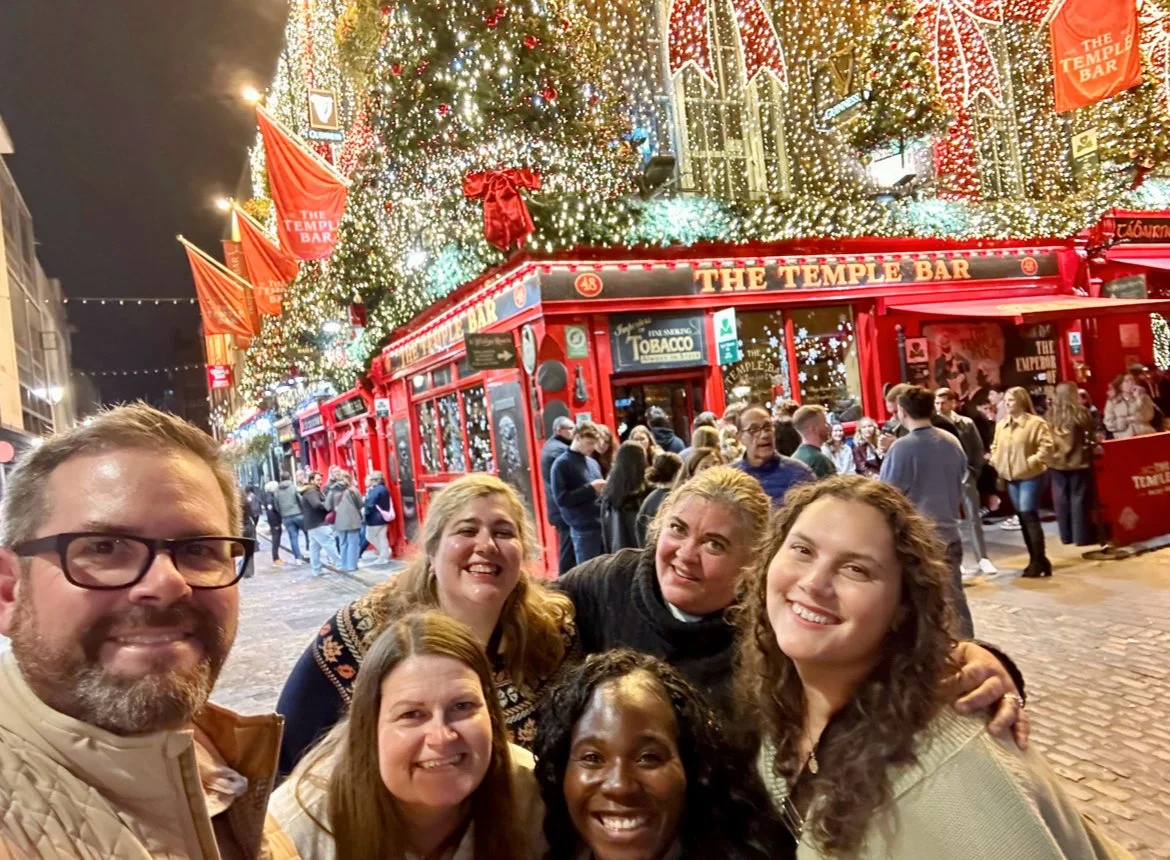 By evening, after a full-bus sing-a-long, we rolled into Dublin, exhausted but in that rare, happy way you feel after a trip that’s gone just right. Dinner done, a few of us wandered into Temple Bar, chasing live music and early Christmas lights, letting the city close out our Irish story in the loud, chaotic, perfectly imperfect way only Dublin can.