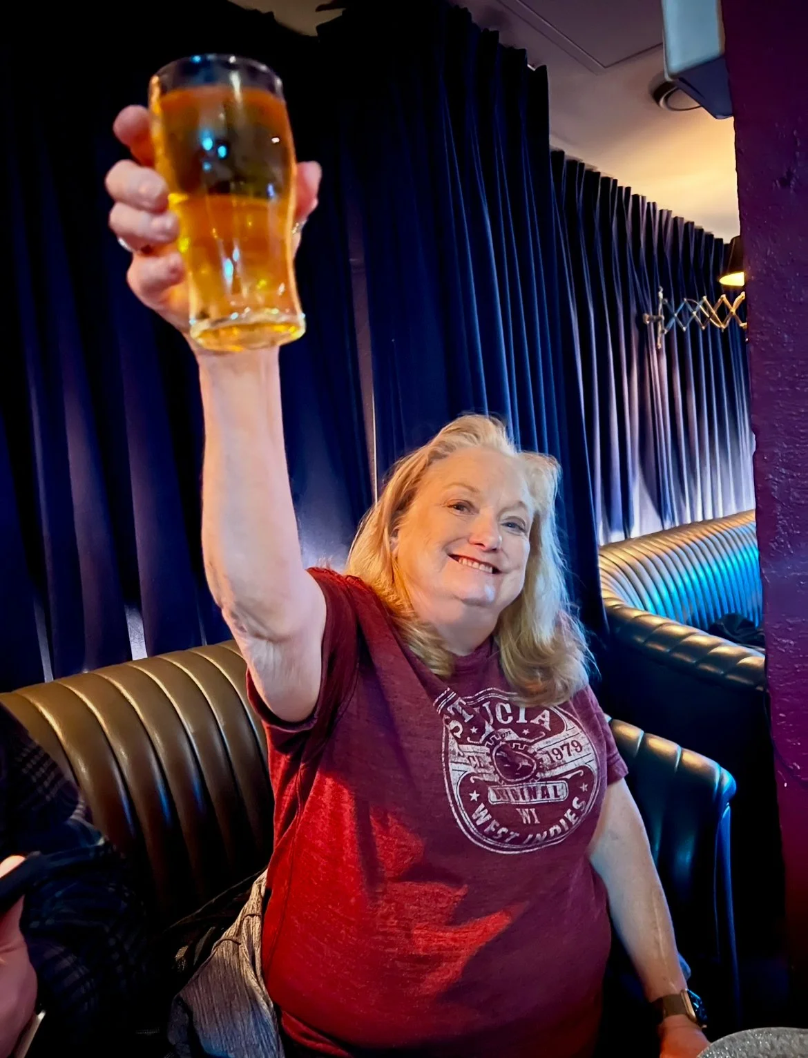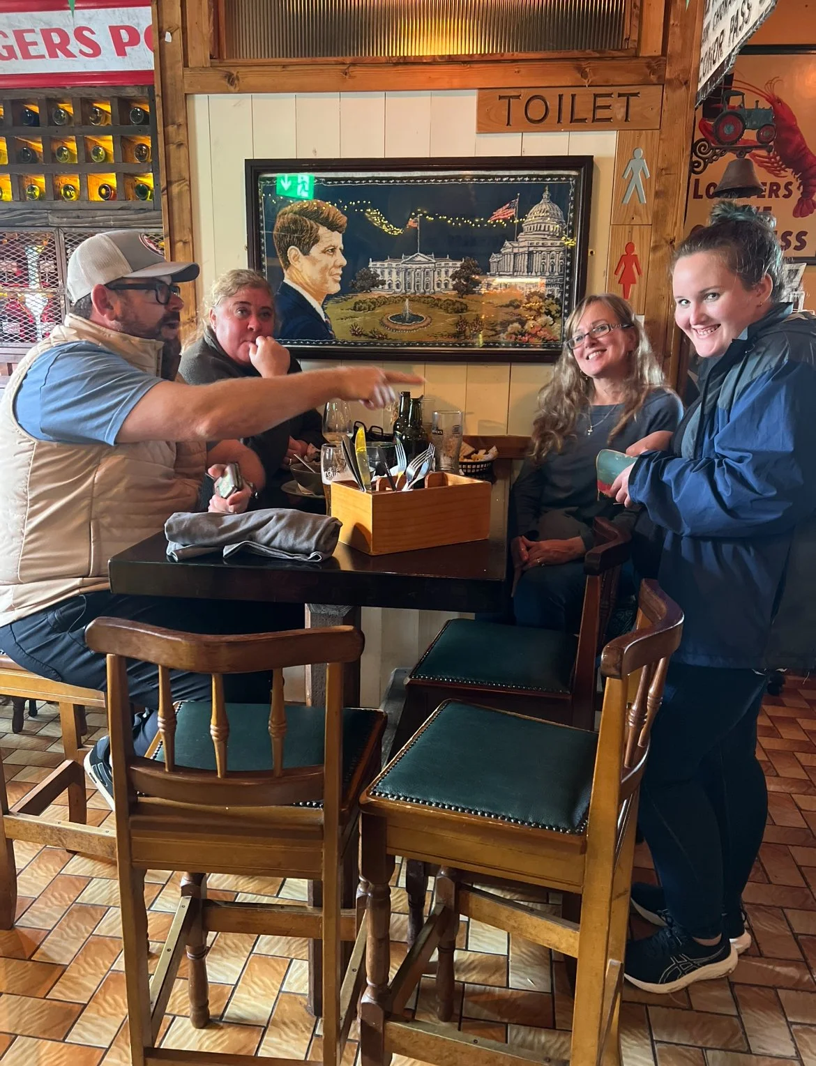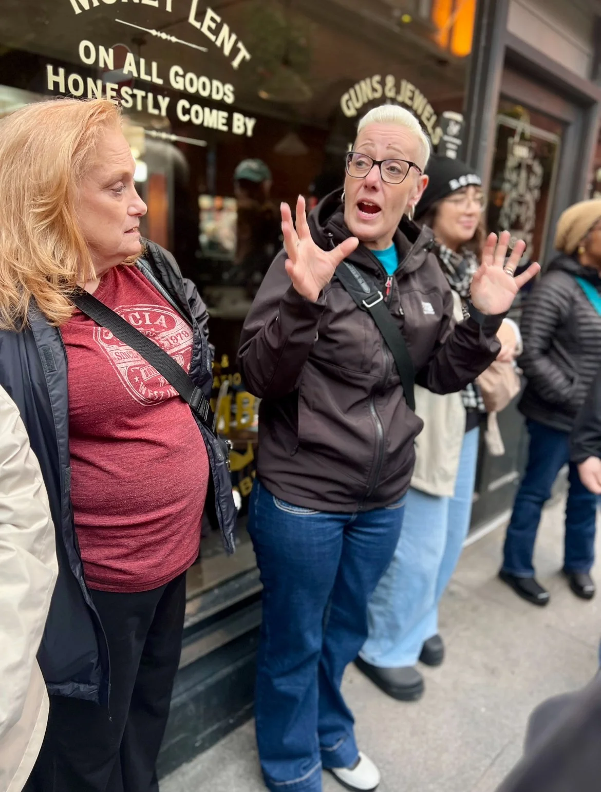 The night wound down like the best tours always do—with Angela, our reluctant poet laureate, holding court. She’s got this sly way of making us laugh at ourselves, at each other, at the absurd little corners of our own lives we’d rather ignore. Somehow, between the jokes and the teasing, she welds us together, a ragtag crew bound by nothing more than shared experience and the kind of laughter that sticks to your ribs.