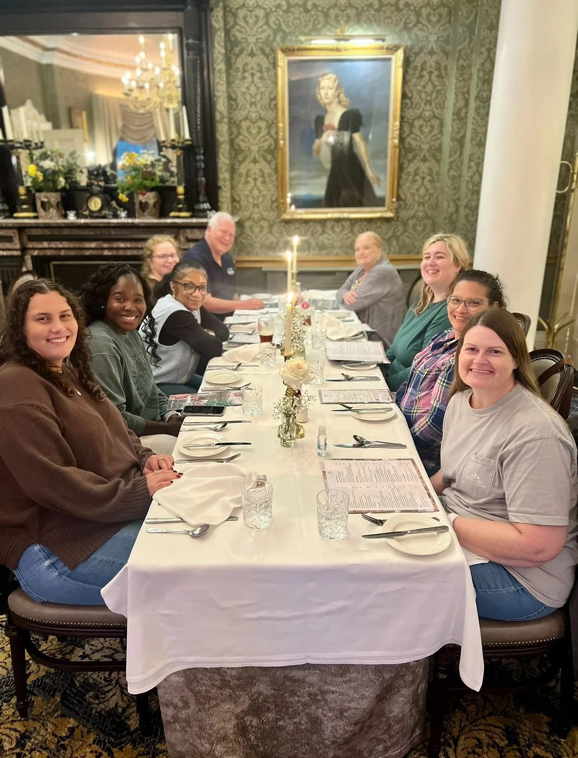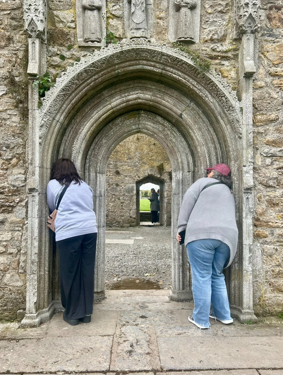 Before dinner, we made two more stops: Torc Waterfall, where the sound of rushing water drowned out everything else, and Muckross House, where Queen Victoria once stayed during her tour of Ireland in the 1800s. Standing there, history pressing in, the day felt like the perfect closing chapter to our time in Killarney. The picture at Muckross is of our “dynamic mother-daughter duos”—a knock at me for overusing that phrase when introducing all three groups to one another. Are they laughing at me in this photo? Probably.