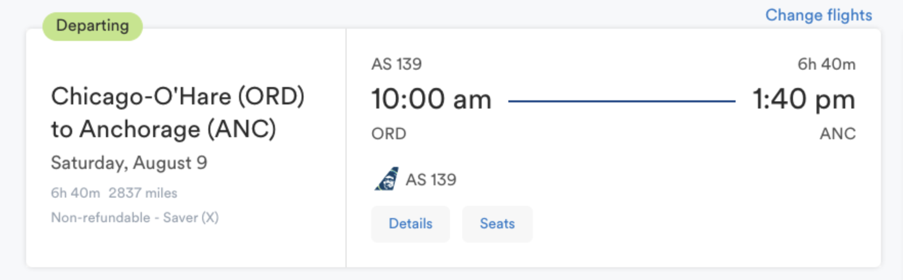 Flight: Chicago - Anchorage Aug. 9